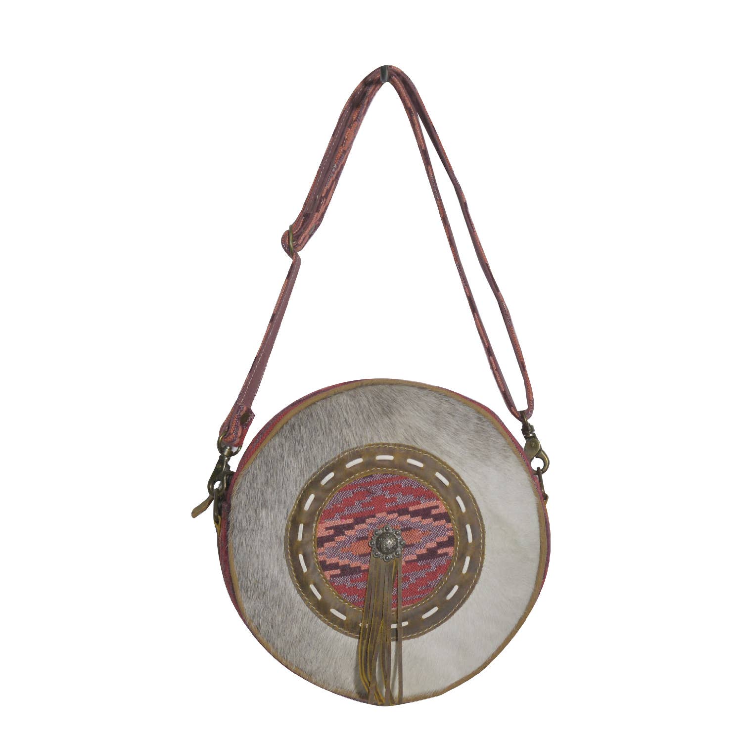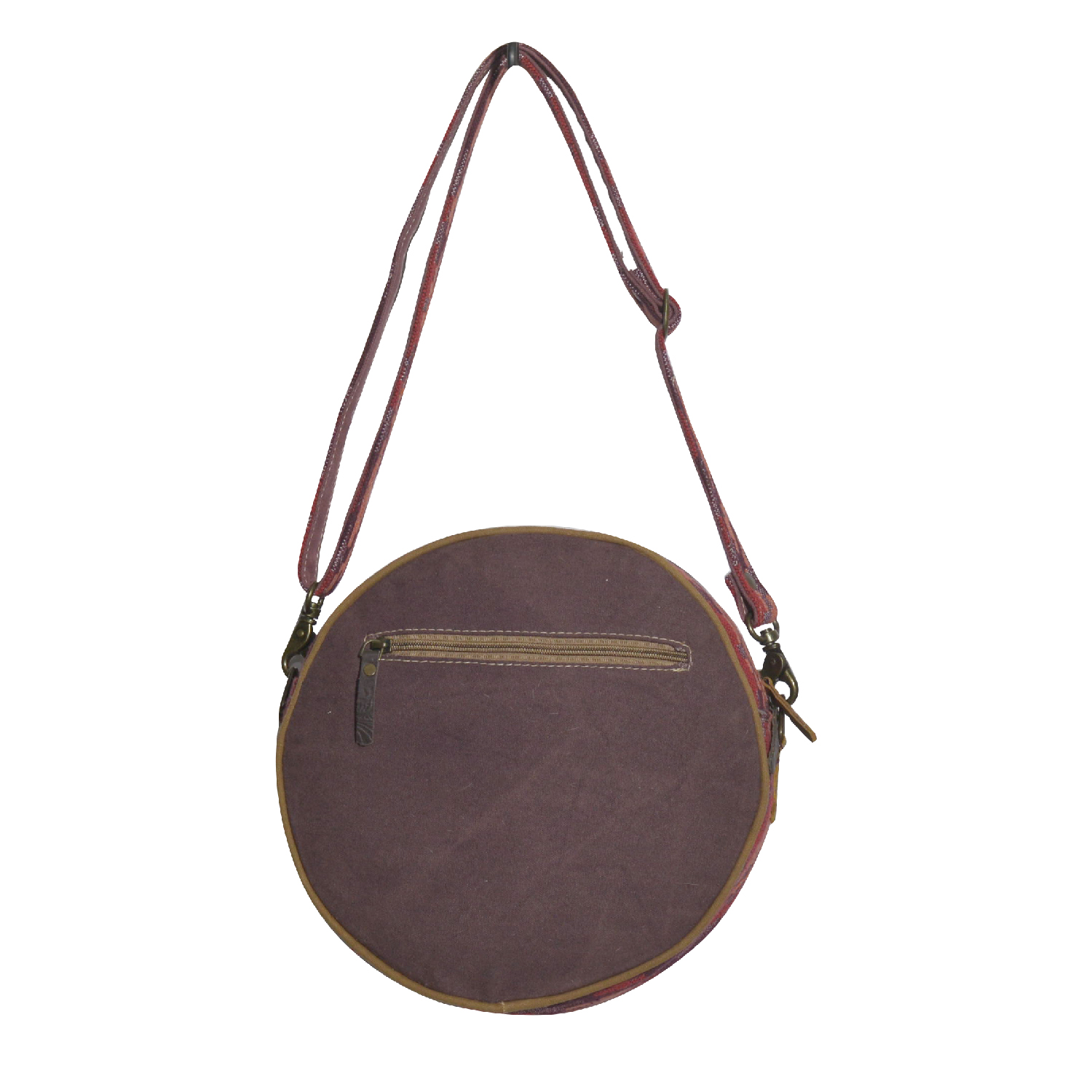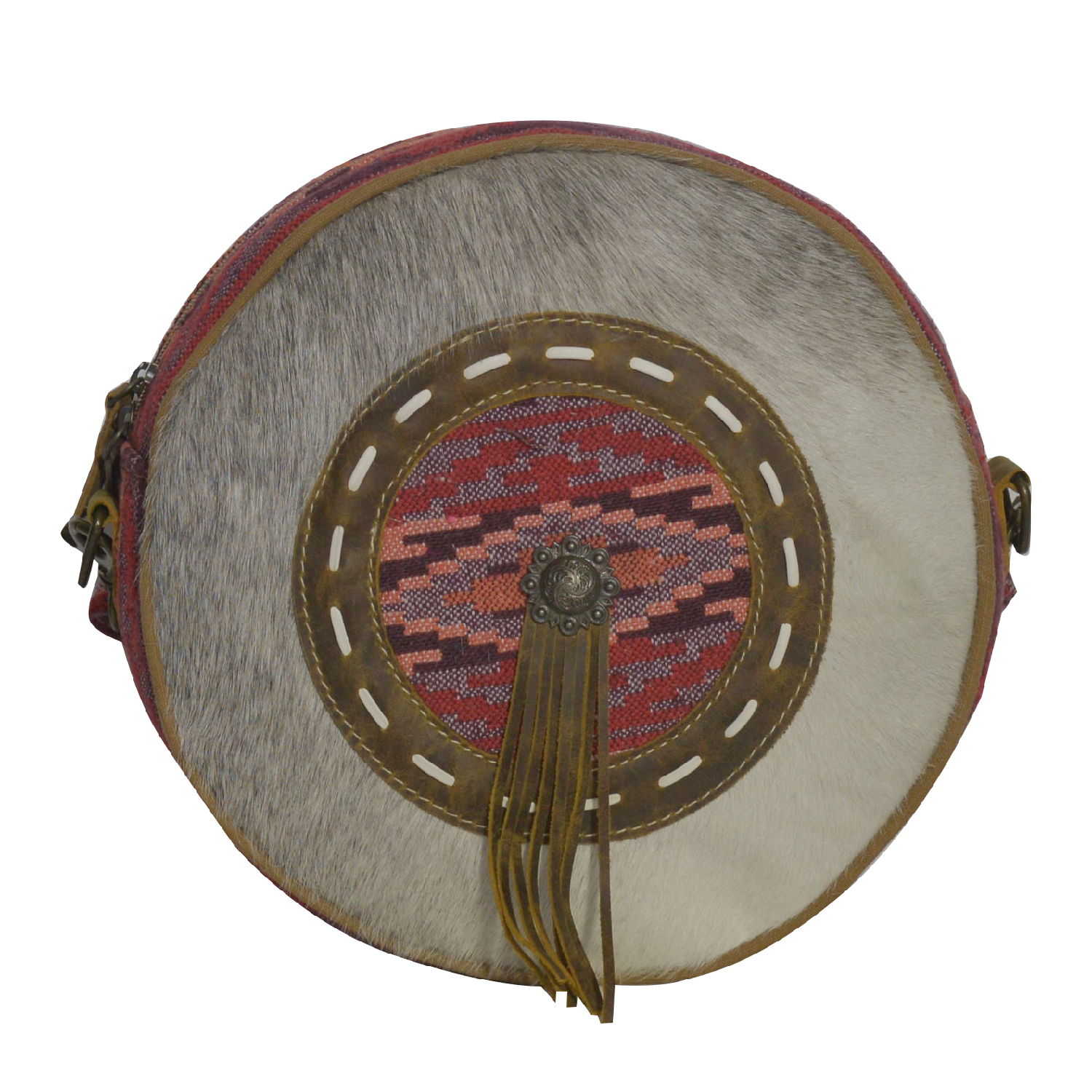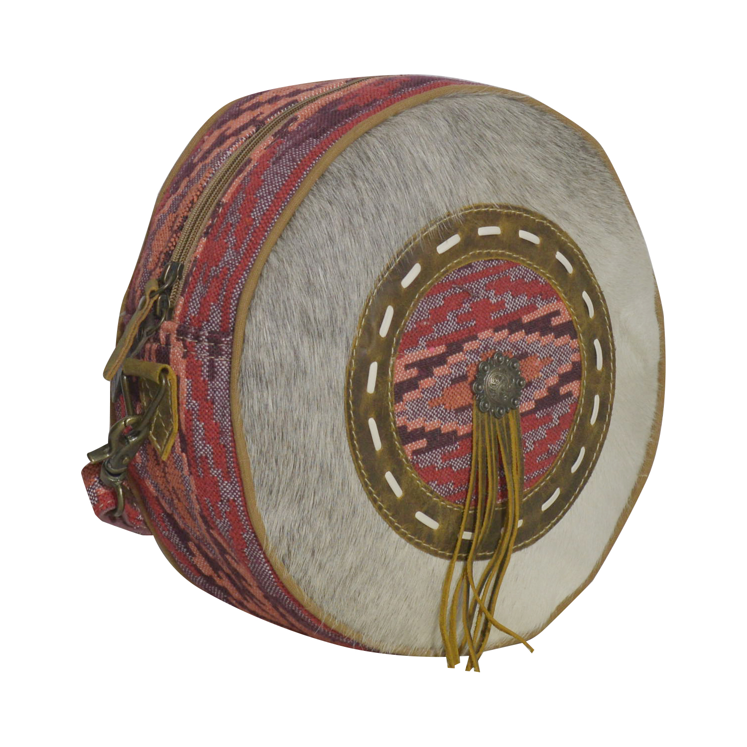 This handmade canteen bag is crafted from a harmonious mix of hairon, soft cotton fabric, leather, and upcycled canvas. The simple yet unique design makes it a versatile accessory, showcasing a perfect blend of style and sustainability.