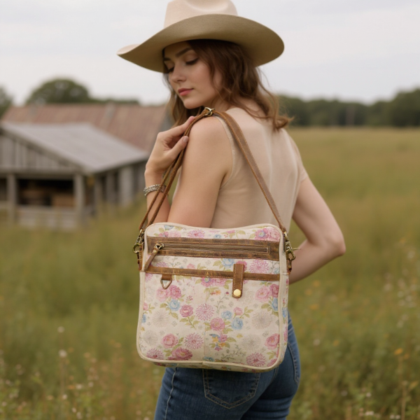 A perfect blend of comfort and style. Crafted from soft cotton fabric and featuring printed leather at sides, complemented by upcycled canvas at the back. Uniquely beautiful, this pouch is your ideal travel companion, making a statement wherever it goes.