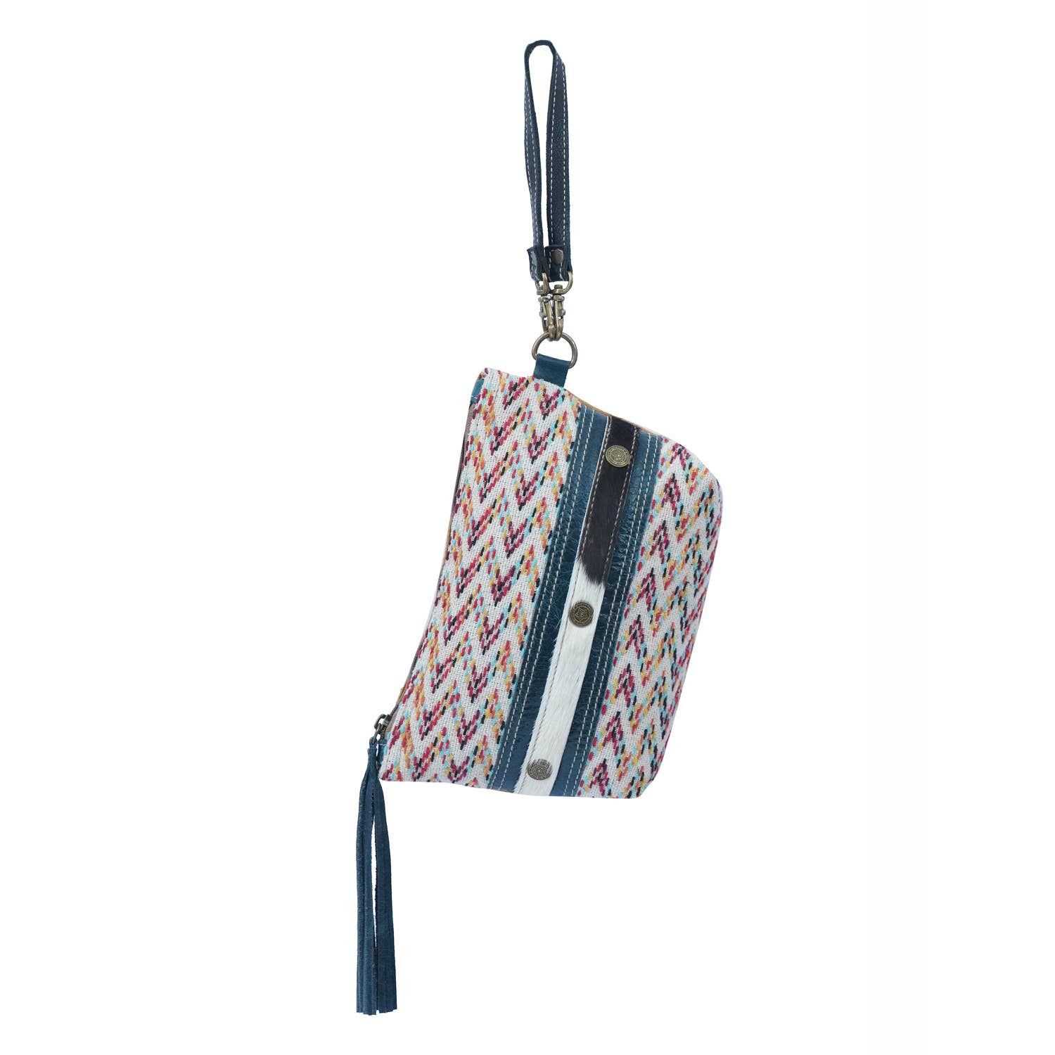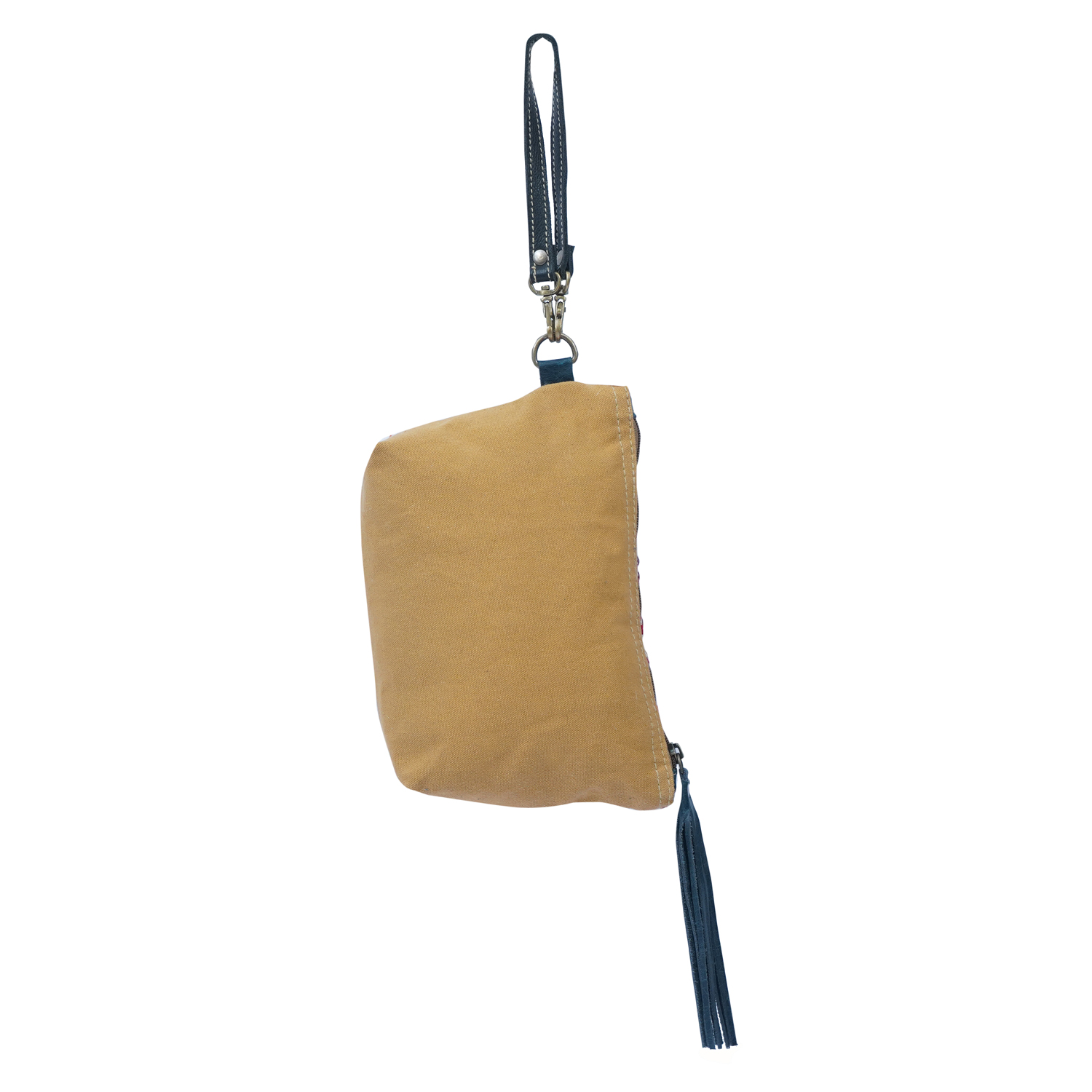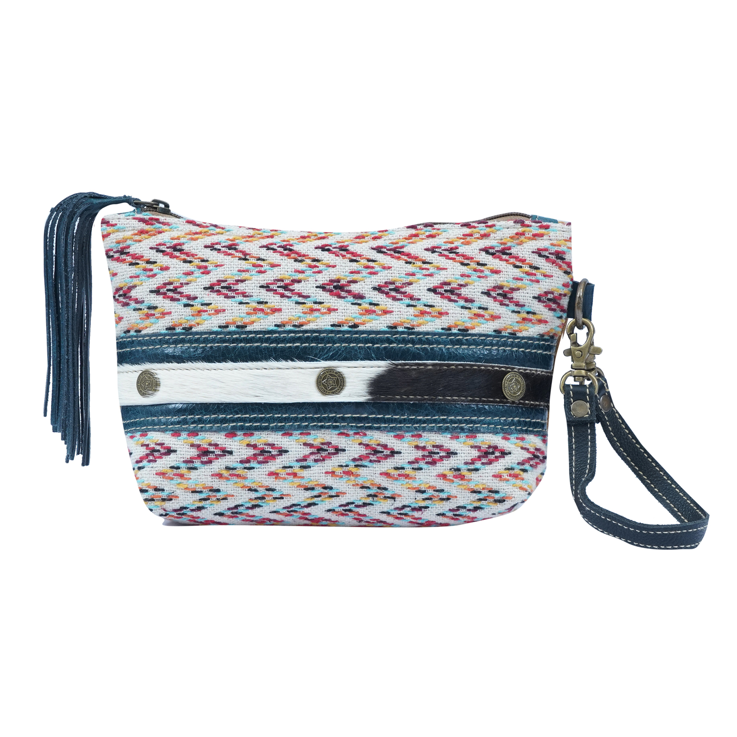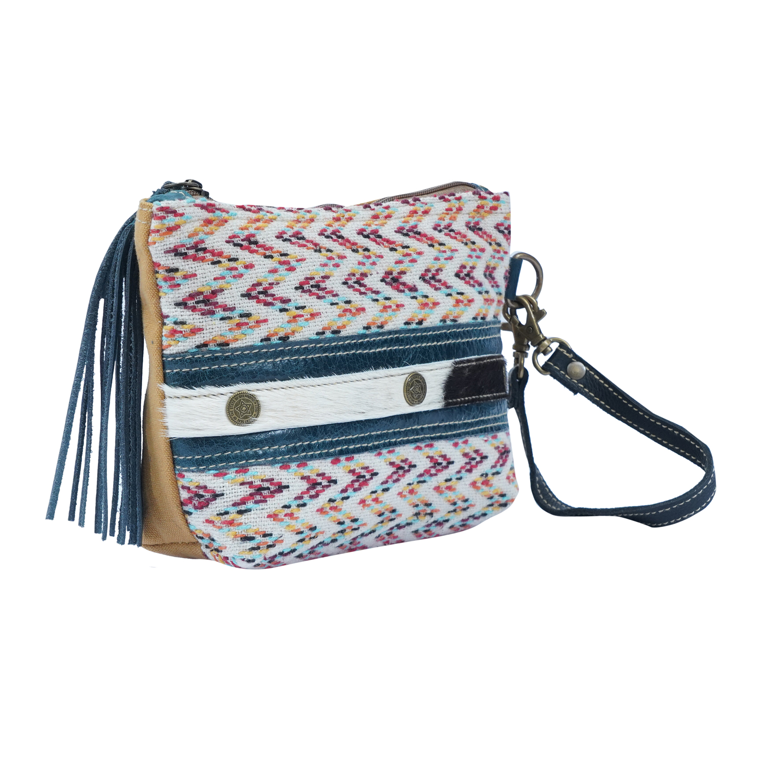 Small & perfect pouch made of rug, leather, hairon & canvas for daily use with a leather strap.