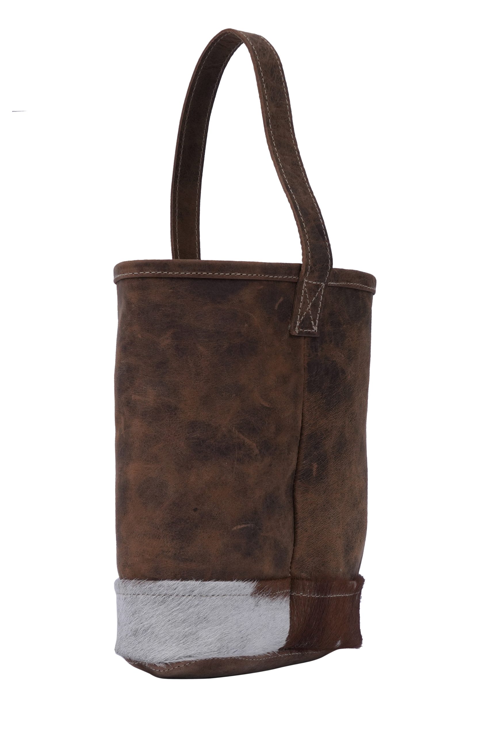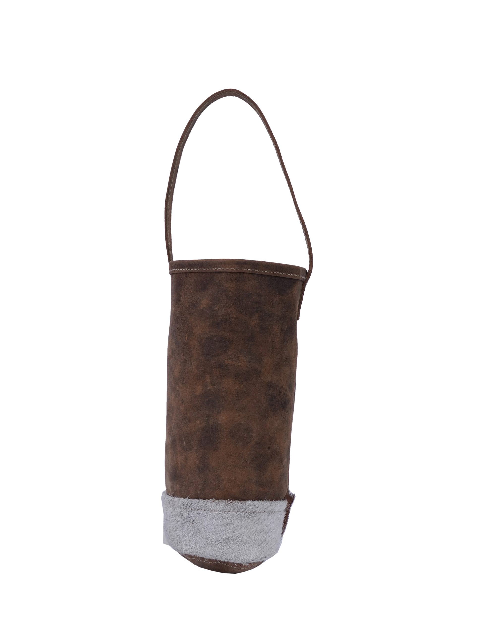 Handmade bottle cover made of leather & hairon along with handle which is strong to hold the bottle and protect your bottle from damage.